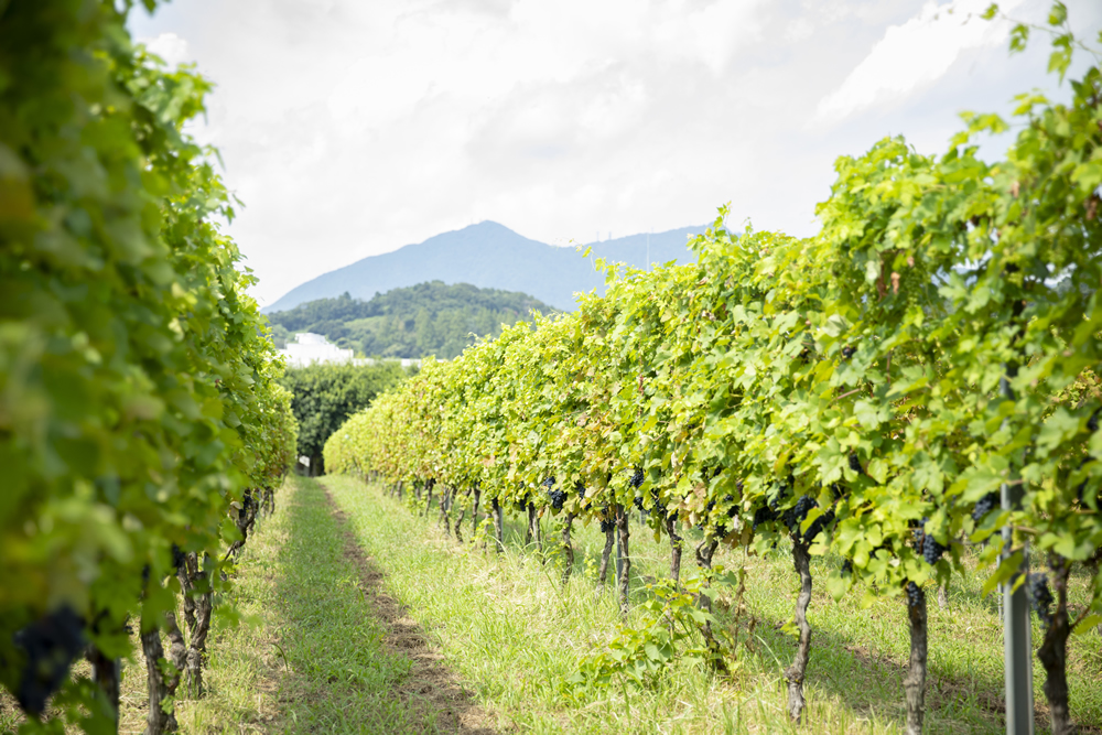 茨城の名峰・筑波山の景色、自然に囲まれた美しいぶどう畑。