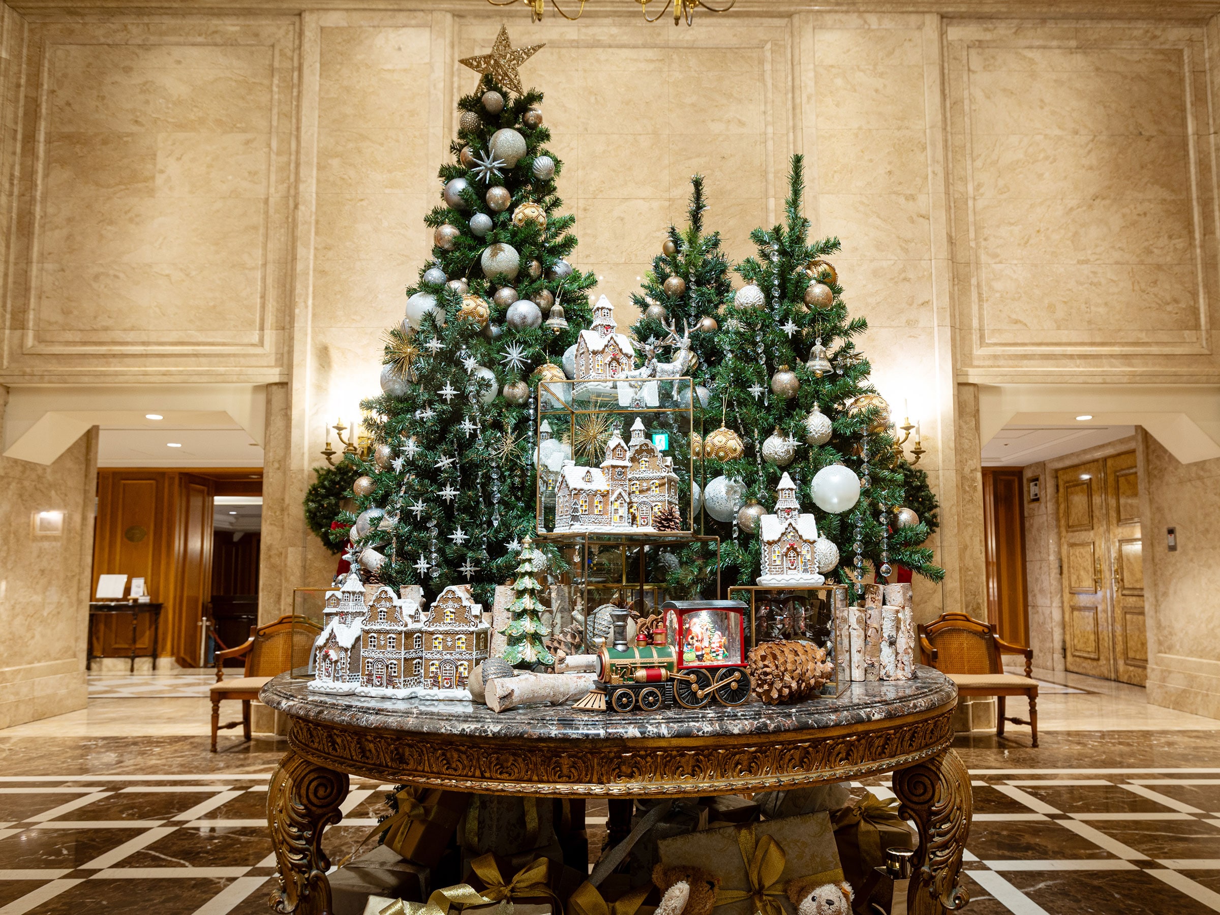 *風格感じるロビー階段、クリスマス装飾、光の庭園イルミネーションなど