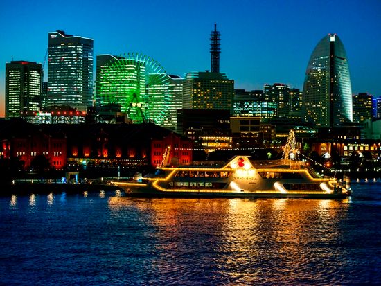 山下公園から赤レンガ倉庫まで夕景クルージングを楽しみながら移動。