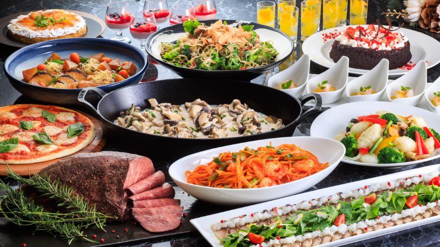 シェフが目の前で仕上げるローストビーフのカッティングサービスをはじめ、地元食材を活かした多彩な料理や、地元食材を活用した料理の数々、旬のフルーツ・デザートをご用意したランチブッフェです。四季折々の味覚をお楽しみいただけます。
