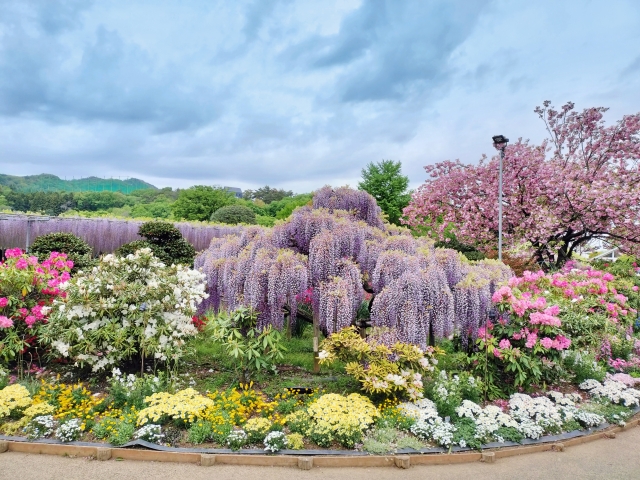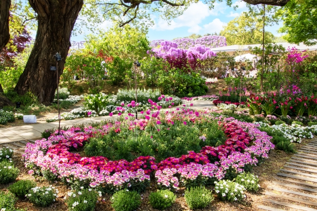 降り注ぐ紫のシャンデリアのような大藤や、色とりどりの春の花々に包まれて。