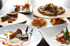 前菜2種/サラダ/パスタ/ピザ(1カット)/デザート/珈琲などドリンク1杯